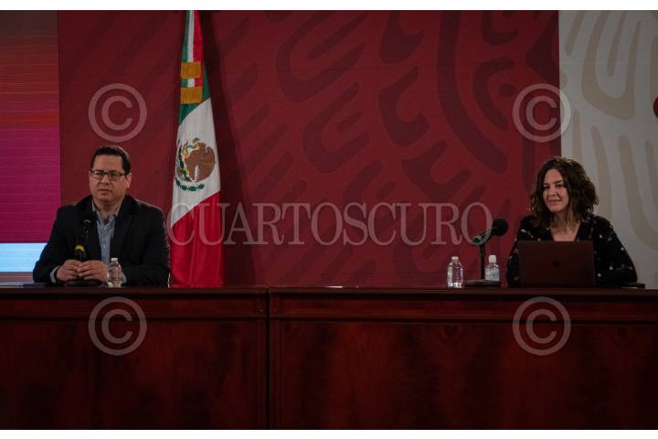 José Luis Alomía Zegarra, director general de Epidemiología y Lorena Rodriguiez, Bores, secretaria Técnica del Consejo Nacional de Salud Mental, durante la conferencia de Informe COVID-19 que se lleva cabo en Palacio Nacional