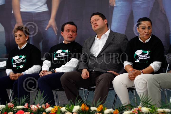 Jorge Carlos Alcocer, Secretario de Salud y Zoé Roblero, Director general del IMSS durante la celebración de los 80 años del Instituto Mexicano del Seguro Social (IMSS), en la Unidad de Congresos del Centro Médico Nacional Siglo XXI.