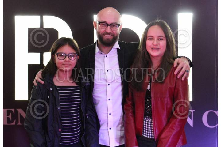 Jorge Michel Grau,director de cine, acompañado de sus hijas, durante la alfombra roja de la película "Perdida", realizada en Cinépolis Plaza Carso. FOTO: ROGELIO MORALES /CUARTOSCURO.COM