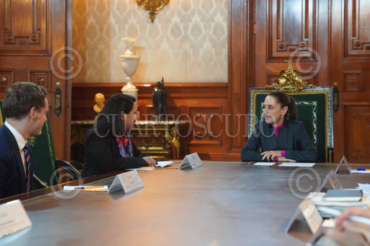 CIUDAD DE MÉXICO, 22NOVIEMBRE2024.- Claudia Sheinbaum, presidenta de México, se reunió en Palacio Nacional con Shelly Shetty, directora ejecutiva en Fitch Ratings, y su equipo, en el que analizaron la economía y finanzas del país. FOTO: PRESIDENCIA/CUARTOSCURO.COM