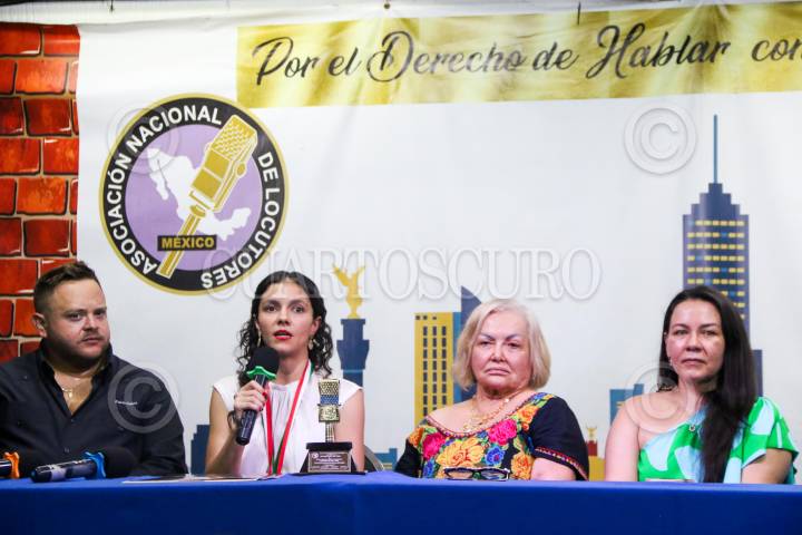 CIUDAD DE MÉXICO. 20MAYO2025.- La directora de Canal 11, Renata Turrent, recibió el galardón de la Asociación de Locutores de la República Mexicana; por su apertura a las mesas de análisis así como una amplia programación de este canal del Estado. La acompaño Rodrigo de la Cadena. FOTO: VICTORIA VALTIERRA/CUARTOSCURO.COM