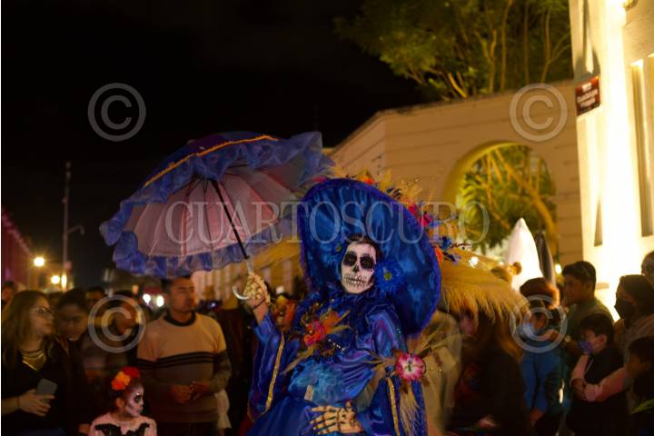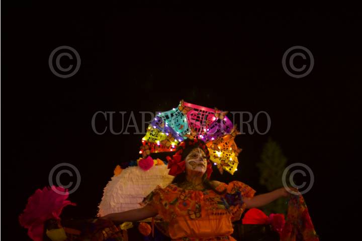 Estudiantes realizaron un desfile de catrinas y catrinas por las principales calles de San Cristóbal de las Casas.