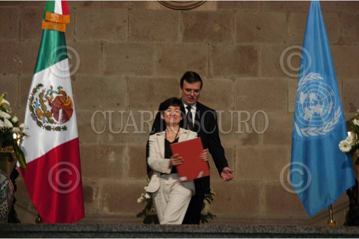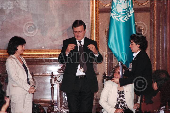 MÉXICO D.F., 01AGOSTO2008.-Marcelo Ebrad, jefe del gobierno capitalino nombro a Inés Alberdi, Directora Ejecutiva del Fondo de Desarrollo de las Naciones Unidas para la Mujer (UNIFEM) como huéspet distinguida de la ciudad y con quien realizó la firma de un convenio de colavoración. FOTO: GUILLERMO PEREA/CUARTOSCURO.COM