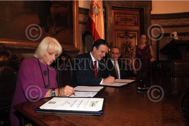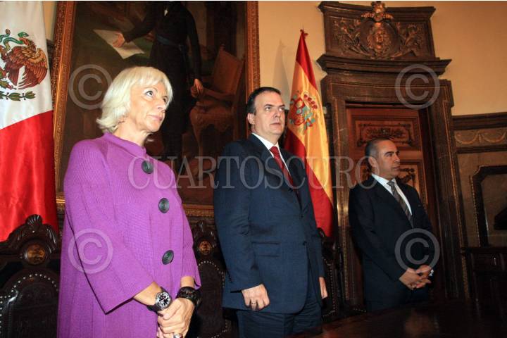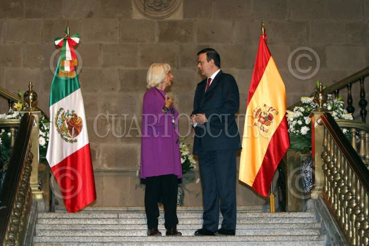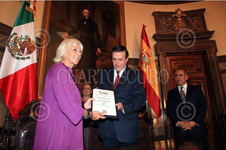 MÉXICO, D.F., 14SEPTIEMBRE2009.- Marcelo Ebrard Casaubón, jefe de Gobierno del Distrito Federal, declaró Huésped Distinguida a Teófila Martínez, Alcaldesa de Cádiz, España, asimismo, firmaron un Convenio de Hermanamiento en el Bicentenario. FOTO: CUARTOSCURO.COM
