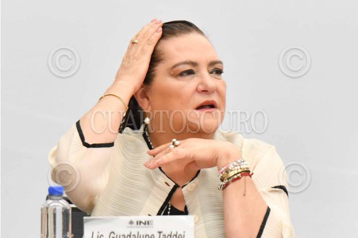 TEPOTZOTLÁN, ESTADO DE MÉXICO, 30ABRIL2025.- Guadalupe Taddei, consejera presidenta del Instituto Nacional Electoral (INE), durante el banderazo de salida para la distribución de las millones de boletas electorales y material de casillas para los comicios del próximo 1 de junio, en donde elegirían ministros, magistrados y jueces del Poder Judicial. La acompañan: Claudia Arlett, secretaria ejecutiva del INE, y Rita Bell, consejera electoral del INE. FOTO: MARIO JASSO/CUARTOSCURO.COM