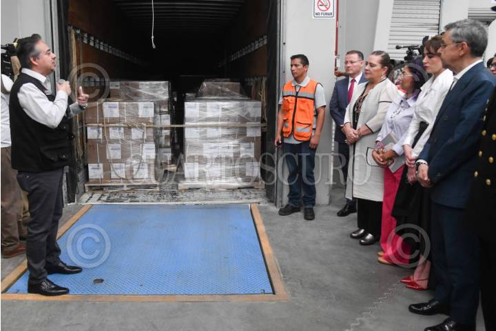 CIUDAD DE MÉXICO, 14MAYO2025.- Patricia Avendaño Durán, consejera presidenta del IECM; junto a Maribel Aguilera Cháirez, directora de Talleres Gráficos de México; María de los Ángeles Gil y César Ernesto Ramos, consejeros del IECM, durante el inicio de la distribución de las boletas electorales, actas y documentación auxiliar a emplearse en el Proceso Electoral Local Extraordinario de la Elección del Poder Judicial en la Ciudad de México 2024-2025, llevada a cabo en las instalaciones de la planta alterna del proveedor de impresión de Talleres Gráficos de México FOTO: MARIO JASSO/CUARTOSCURO.COM