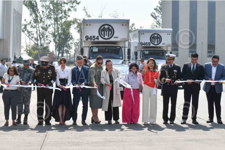 TEPOTZOTLÁN, ESTADO DE MÉXICO, 30ABRIL2025.- César Yáñez, subsecretario de Gobernación; Guadalupe Taddei, consejera presidenta del Instituto Nacional Electoral (INE), y las consejeras electorales: Rita Bell, y Dania Ravel, durante el banderazo de salida para la distribución de las millones de boletas electorales y material de casillas para los comicios del próximo 1 de junio, en donde elegirían ministros, magistrados y jueces del Poder Judicial. FOTO: MARIO JASSO/CUARTOSCURO.COM