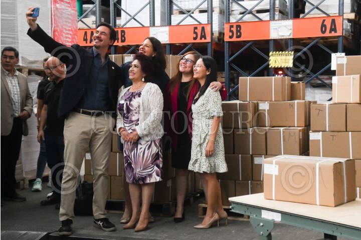 CIUDAD DE MÉXICO, 14MAYO2025.- Patricia Avendaño Durán, consejera presidenta del IECM, junto a los consejeros electorales: César Ernesto Ramos; Maira Melisa Guerra; Cecilia Aída Hernández, y María de los Ángeles Gil, se toman una "selfie" durante el inicio de la distribución de las boletas electorales, actas y documentación auxiliar a emplearse en el Proceso Electoral Local Extraordinario de la Elección del Poder Judicial en la Ciudad de México 2024-2025, llevada a cabo en las instalaciones de la planta alterna del proveedor de impresión de Talleres Gráficos de México FOTO: MARIO JASSO/CUARTOSCURO.COM