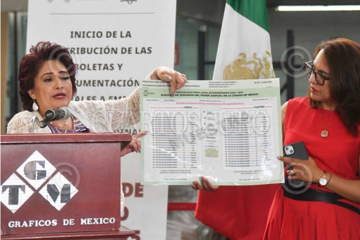 CIUDAD DE MÉXICO, 14MAYO2025.- Inicio de la distribución de las boletas electorales, actas y documentación auxiliar a emplearse en el Proceso Electoral Local Extraordinario de la Elección del Poder Judicial en la Ciudad de México 2024-2025, llevada a cabo en las instalaciones de la planta alterna del proveedor de impresión de Talleres Gráficos de México FOTO: MARIO JASSO/CUARTOSCURO.COM