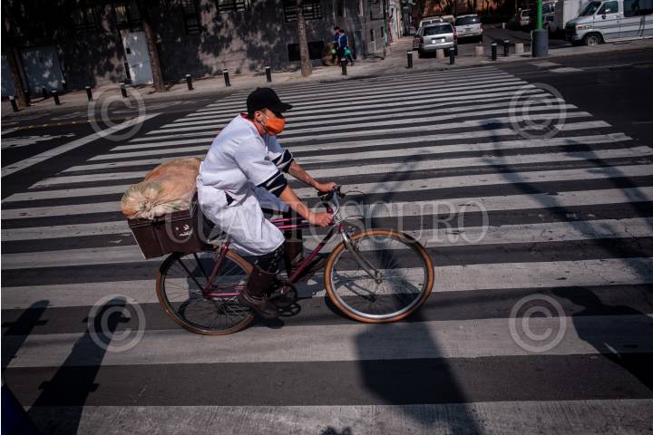 Un joven avanza a bordo de su bicicleta por la avenida Eje Central
