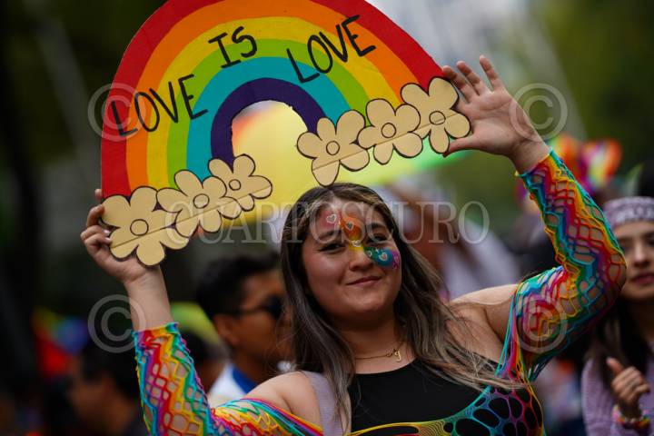 CIUDAD DE MÉXICO, 28JUNIO2025.- Miles de personas participaron en la 47 edición de la marcha del Orgullo LGBTTTIQPA+ que recorrió avenida Paseo de la Reforma al Zócalo. FOTO: GALO CAÑAS/CUARTOSCURO.COM