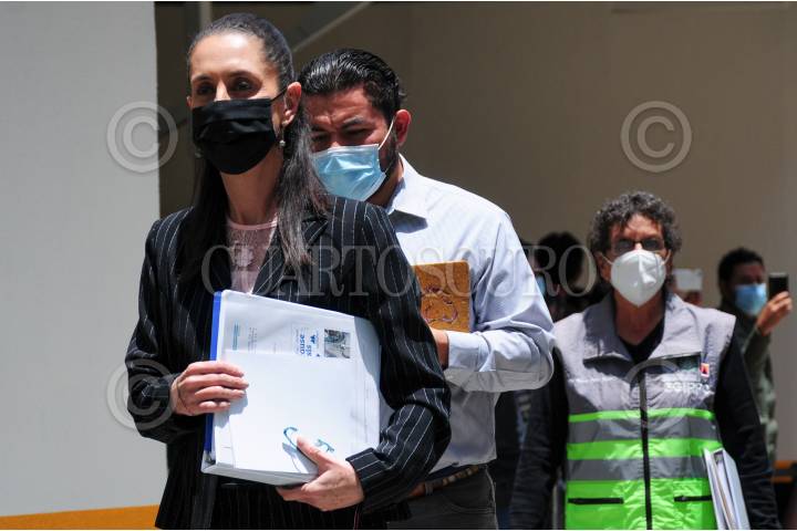 Claudia Sheinbaum sale de las instalaciones de Protección Civil con el dictamen de la Línea 12.
