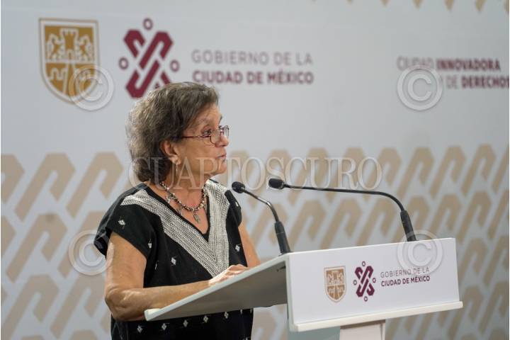 Myriam Urzúa, titular de la Secretaría de Gestión Integral de Riesgos y Protección Civil (SGIRPC), durante la presentación del tercer informe de la empresa noruega DNV sobre el accidente de la Línea 12.