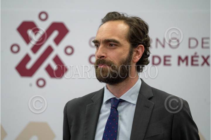 Martí Batres, secretario de Gobierno de la CDMX, durante la presentación del informe de la empresa noruega DNV sobre el accidente de la Línea 12.