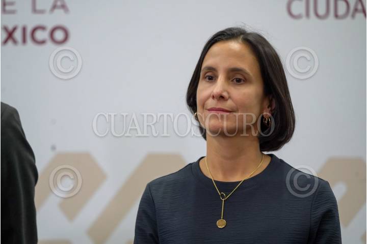Luz Elena González Escobar, secretaria de Administración y Finanzas, durante la presentación del informe de la empresa noruega DNV sobre el accidente de la Línea 12.