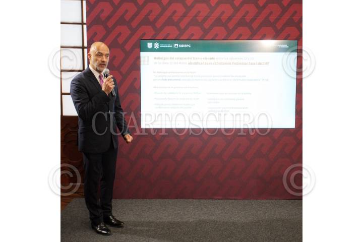 Andrés Lajous, secretario de Movilidad, durante la presentación del informe de la empresa noruega DNV sobre el accidente de la Línea 12.