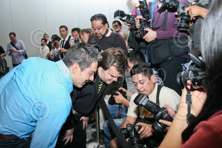 MÉXICO, D.F., 28MAYO2011.- El actor Omar Chaparro, quien da voz en español al oso Po, durante la conferencia de la película Kung Fu Panda 2. FOTO: ISAAC ESQUIVEL/CUARTOSCURO.COM