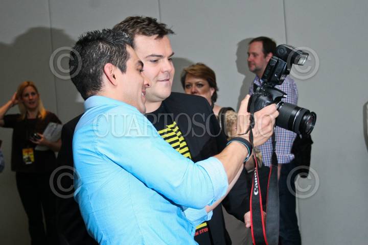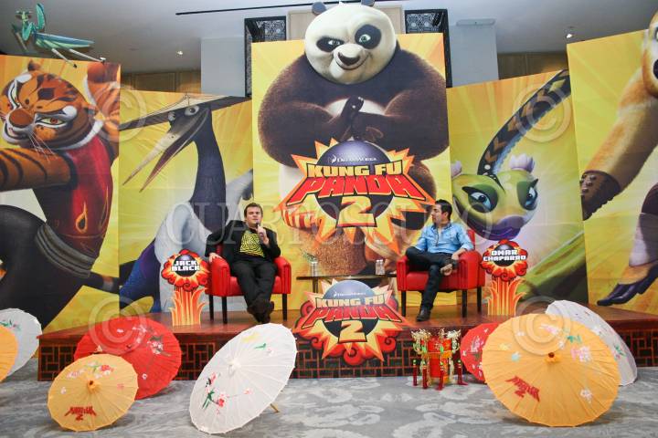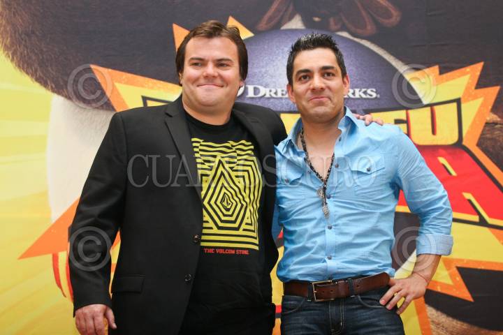 MÉXICO, D.F., 28MAYO2011.- Los actores Jack Black y Omar Chaparro, quienes dan voz en inglés y español al oso Po, durante la conferencia de la película Kung Fu Panda 2. FOTO: ISAAC ESQUIVEL/CUARTOSCURO.COM
