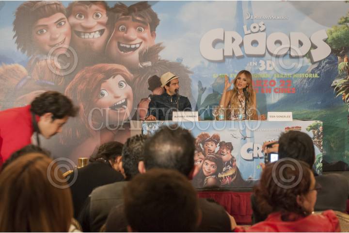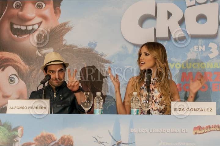 MÉXICO, D.F., 14MARZO2013.- Los actores Eiza González y Alfonso Herrera ofrecieron una conferencia de prensa para promocionar la película animada "Los Croods", cinta en donde dan doblaje a dos jóvenes cavernícolas llamados Guy y Eep. FOTO: DIEGO SIMÓN SÁNCHEZ /CUARTOSCURO.COM