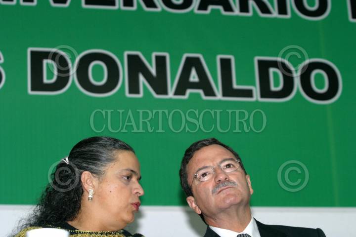 MEXICO, D.F., 23MARZO2006.- Beatriz Paredes, candidata priista a la jefatura de gobierno del DF y Mariano Palacios Alcocer, Presidente Nacional del PRI, durante la presentación de la nueva edición del libro "Cincuenta Discursos Luis Donaldo Colosio", que se realizó en el CEN del PRI. FOTO: Moisès Pablo/CUARTOSCURO.COM