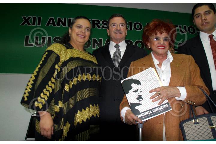 MEXICO, D.F., 23MARZO2006.- Beatriz Paredes y Mariano Palacios Alcocer, Presidente Nacional del PRI y María Luisa "La China" Mendoza, periodista, durante la presentación de la nueva edición del libro "Cincuenta Discursos Luis Donaldo Colosio", que se realizó en el CEN del PRI. FOTO: Moisès Pablo/CUARTOSCURO.COM