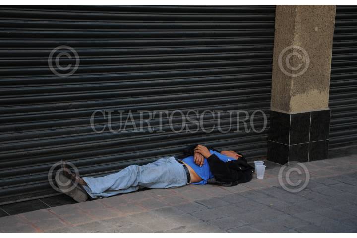 MÉXICO, DF., 30MAYO2010.- A las doce del medio día, en la Zona Rosa, un hombre duerme junto a dos vasos de plástico. FOTO: PEDRO VALTIERRA/CUARTOSCURO.COM