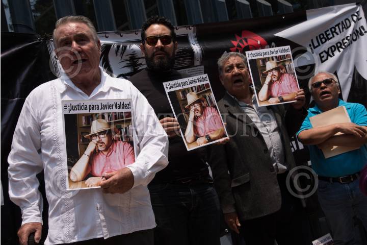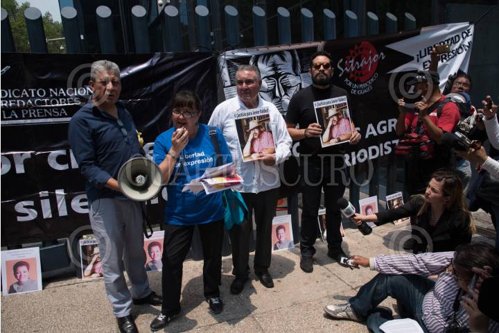 CIUDAD DE MÉXICO, 16MAYO2017.- Miembros del Sindicato Nacional de Redactores de la Prensa, del Sindicato de La Jornada, y periodistas de diversos medios de comunicación, realizaron una protesta a las afueras de las instalaciones de la Procuraduría General de la República, para exigir justicia por el asesinato del periodista Javier Valdez, director de Río Doce en Culiacán, Sinaloa. FOTO: TERCERO DÍAZ /CUARTOSCURO.COM