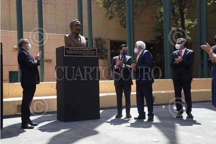 IMSS develó busto del doctor Antonio Fraga Mouret en la Plaza de las Médicas y Médicos Ilustres.