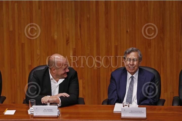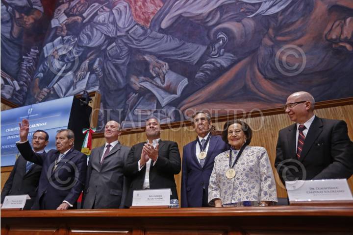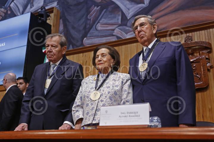 GUADALAJARA, JALISCO, 14DICIEMBRE2018.- Ifigenia Martha Martínez y Hernández economista, Porfirio Muñoz Ledo Político y Cuauhtémoc Cárdenas Solórzano Político, recibieron el Doctorado Honoris Causa por la Universidad de Guadalajara U. De G., por su destacada labor en la democracia de México, dicha ceremonia tuvo lugar en el Paraninfo Enrique Díaz de León de la U. De G., la misma fue encabezada por el Rector Miguel Ángel Navarro y el Gobernador del Estado Enrique Alfaro. FOTO: FERNANDO CARRANZA GARCIA / CUARTOSCURO.COM