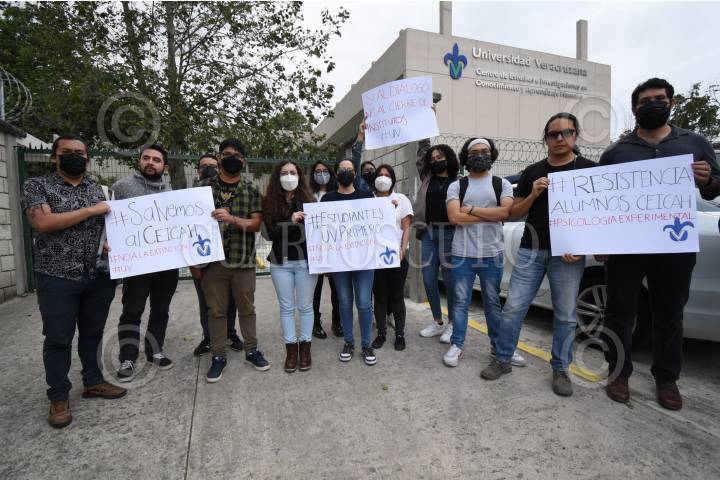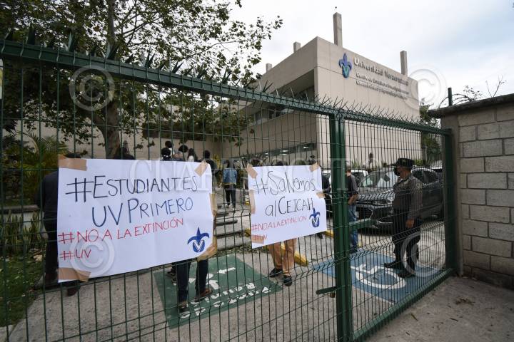 Estudiantes de posgrados de la Universidad Veracruzana se manifestaron para exigir que no desaparezca la unidad donde estudian por un conflicto entre directivos y personal académico.