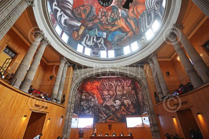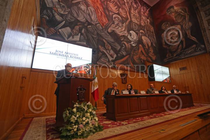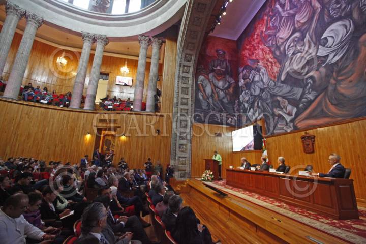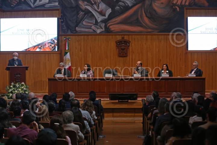 Imagen general del Paraninfo Enrique Díaz de León durante la entrega del Doctorado Honoris Causa al científico y académico mexicano José Aristeo Sarukhán Kermez, esto en la edición 36 de la Feria Internacional del Libro de Guadalajara (FIL).