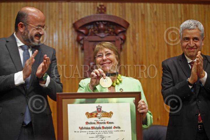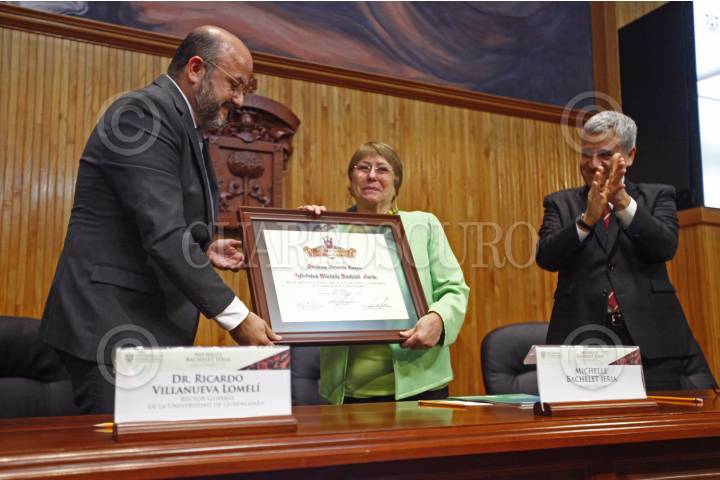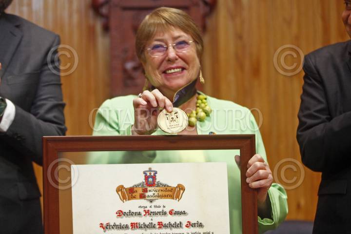 Michelle Bachelet Jeria, durante el evento donde fue reconocida con el Doctorado, Honoris Causa, por parte de la Universidad de Guadalajara.