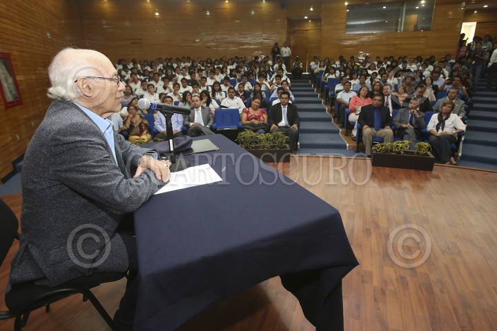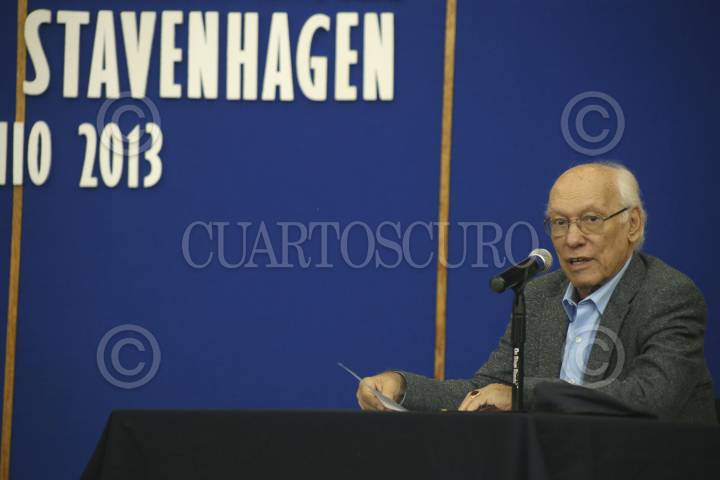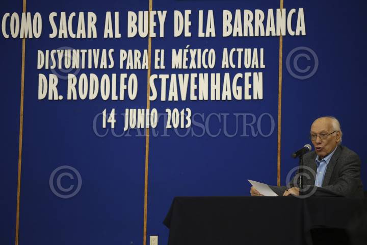 CUERNAVACA, MORELOS, 14JUNIO2013.- El sociólogo y antropólogo, Rodolfo Stavenhagen, impartió las ponencia “Cómo sacar al buey de la barranca, disyuntivas del México actual”, charla con la que analiza a detalle el impacto del neoliberalismo sistema que continua generando pobreza y marginación. El evento tuvo lugar en el auditorio Emiliano Zapata de la Universidad Autónoma del Estado de Morelos, misma institución que entregara al intelectual, el doctorado Honoris causa. FOTO: ALMA LAFAYET /CUARTOSCURO.COM