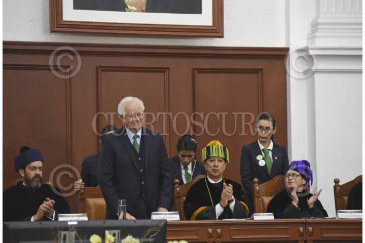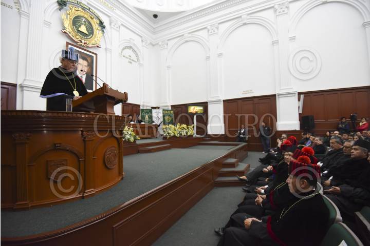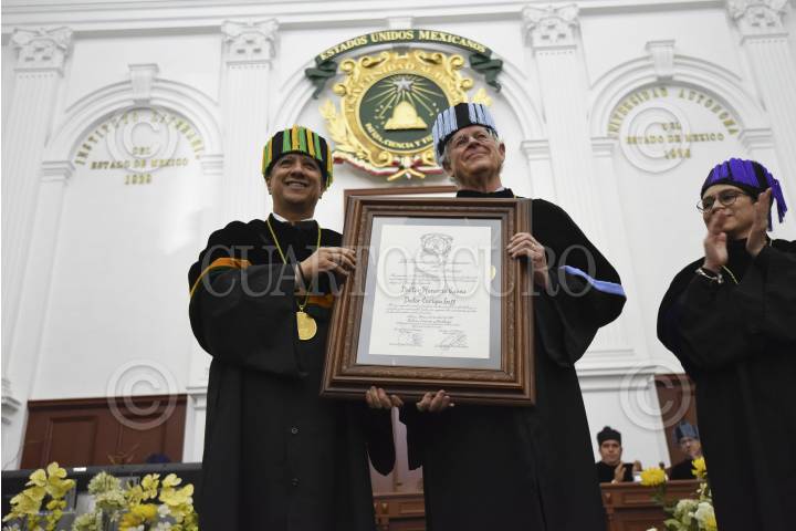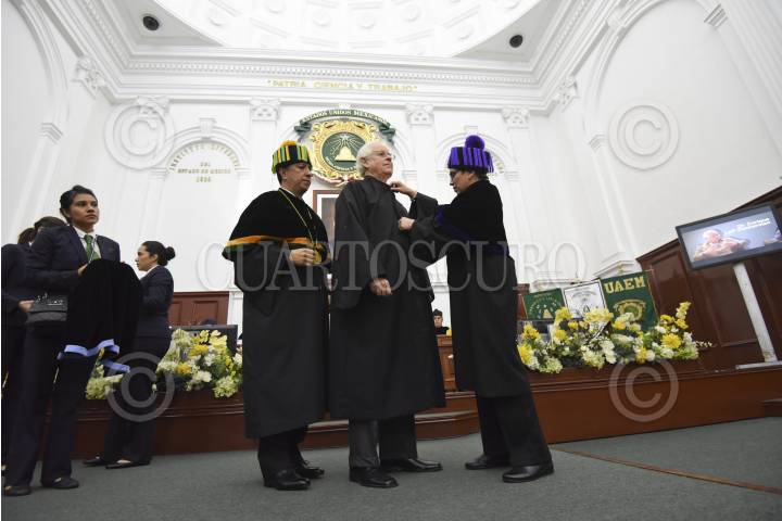 TOLUCA, ESTADO DE MÉXICO, 02DICIEMBRE2016.- Jorge Olvera García, rector de la Universidad Autónoma del Estado de México entrego el Doctorado Honoris Causa a uno de los principales autores de la teoría y praxis del ambientalismo en México, Enrique Leff Zimmerman. FOTO: PILAR AGUILAR / CUARTOSCURO.COM