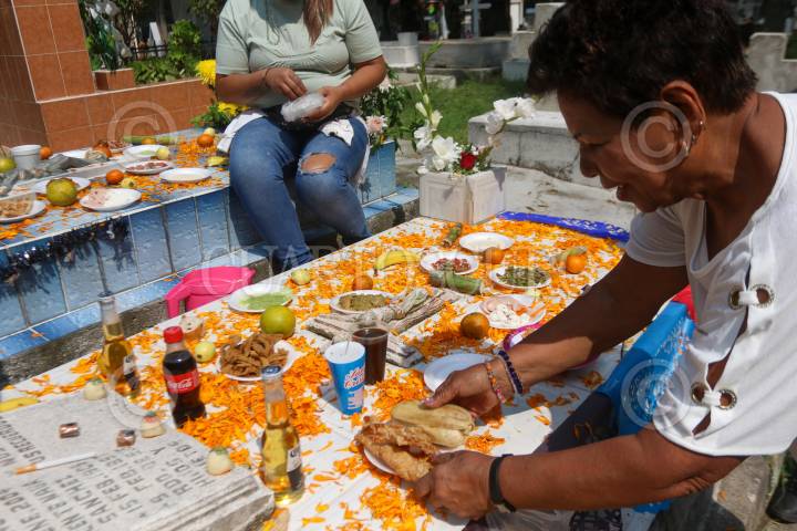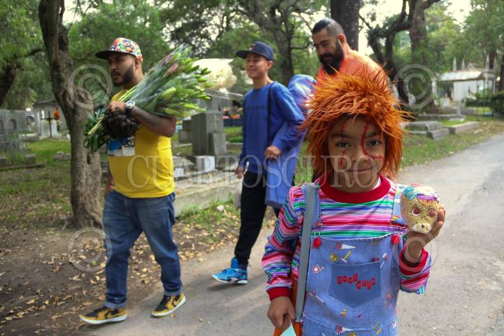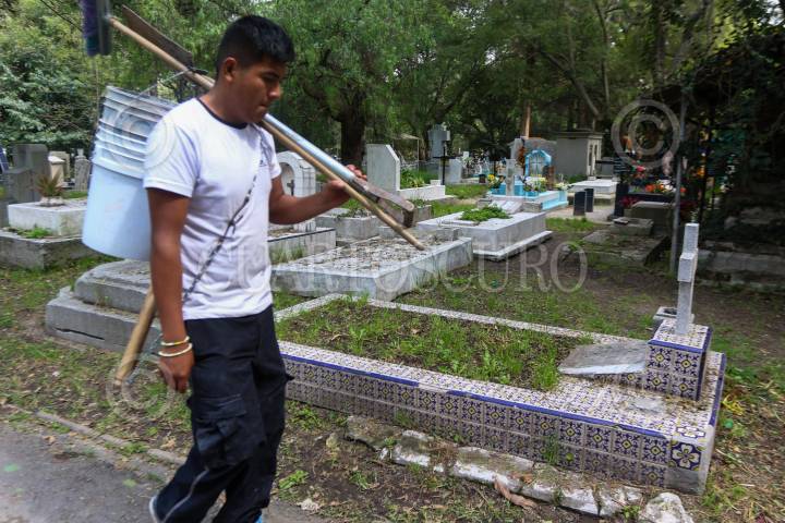 Visitantes arreglan las tumbas de sus seres queridos este día de todos Santos.