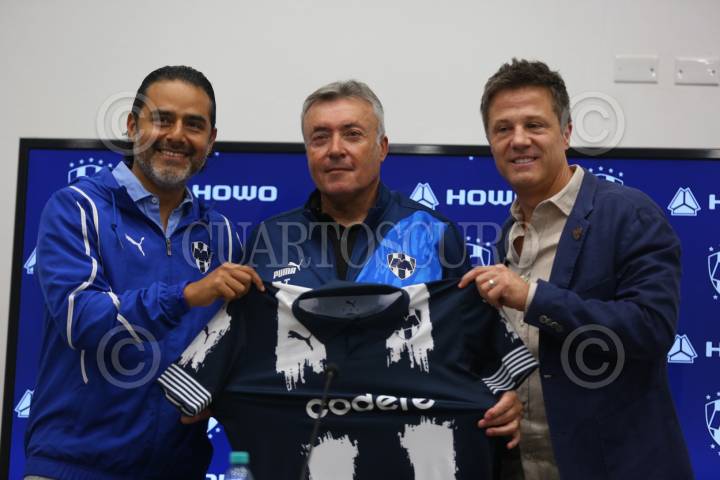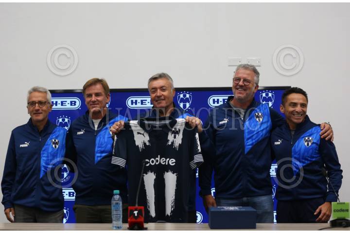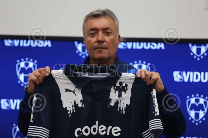 SANTIAGO, NUEVO LEÓN, 26MAYO2025.- El entrenador español Domenec Torrent fue presentado ante los medios de comunicación como nuevo Director Técnico de los Rayados del Monterrey, en el centro de entrenamiento del Club Monterrey en Santiago, Nuevo León, acompañado de directivos del Monterrey. FOTO: GABRIELA PÉREZ MONTIEL / CUARTOSCURO.COM