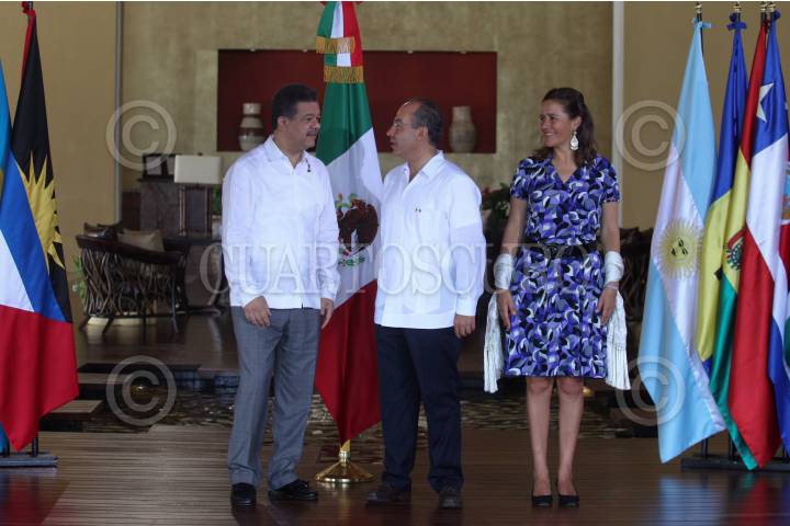 PLAYA DEL CARMEN, QUINTANA ROO, 22 FEBRERO2010.- Leonel Fernandez Reyna, Presidente de la República Dominicana, junto a Felipe Calderón, Presidente de México, minutos antes de iniciar la inauguración de la XXI Cumbre de Río. FOTO: ALFREDO GUERRERO/CUARTOSCURO.COM