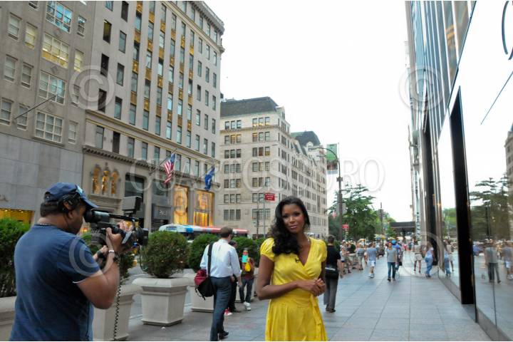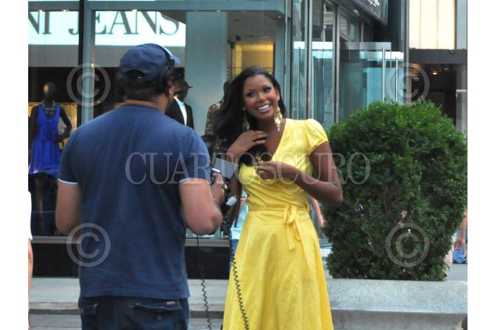 NEW YORK, ESTADOS UNIDOS, 23JULIO2010.- Ruth Ocumares, Miss Republica Dominicana 2009, durante la grabacion de un programa televisivo en la V Avenue de New York, la calle mas cara y lujosa del mundo. FOTO: MARIA DI PAOLA BLUM/CUARTOSCURO.COM
