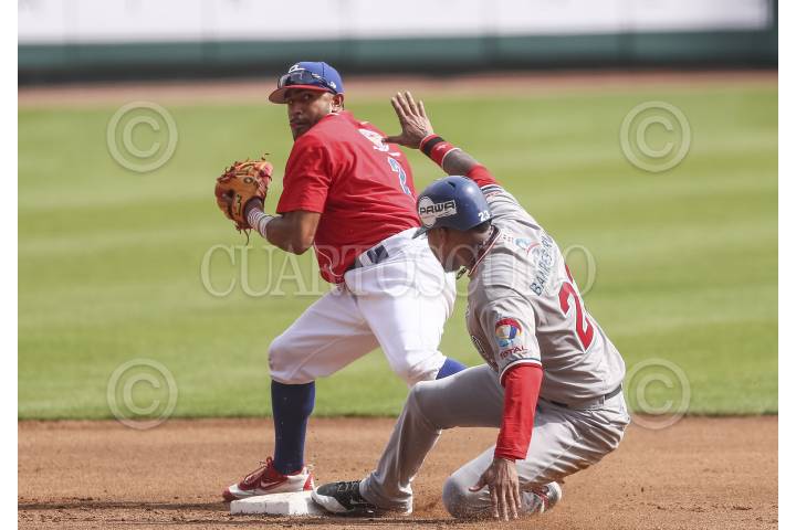 CULIACÁN, SINALOA, 04FEBRERO2017.- Engel Beltre es puesto pot por el segada base de Puerto Rico Jesmuel Valentin , durante el partido de beisbol de la Serie del Caribe entre Republica Dominicana vs Puerto Rico en el Nuevo Estadio de los Tomateros. FOTO: LUIS GUTIÉRREZ /NORTEPHOTO /CUARTOSCURO.COM