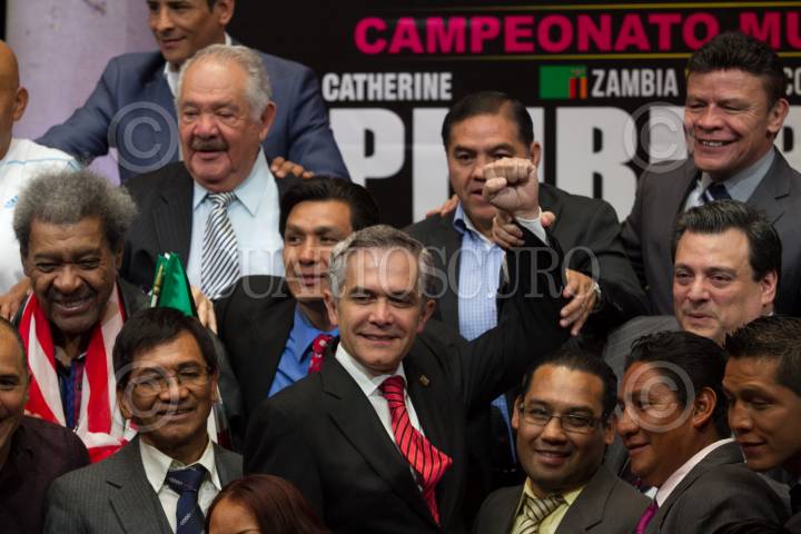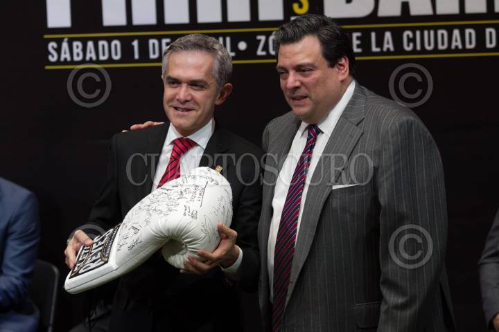 CIUDAD DE MÉXICO, 30MARZO2017.- Miguel Ángel Mancera, Jefe de Gobierno, encabezó la presentación de los boxeadores que participarán en la magna de función de boxeo, que se realizará el próximo 1 de abril en la plancha del Zócalo. FOTO: MOISÉS PABLO /CUARTOSCURO.COM