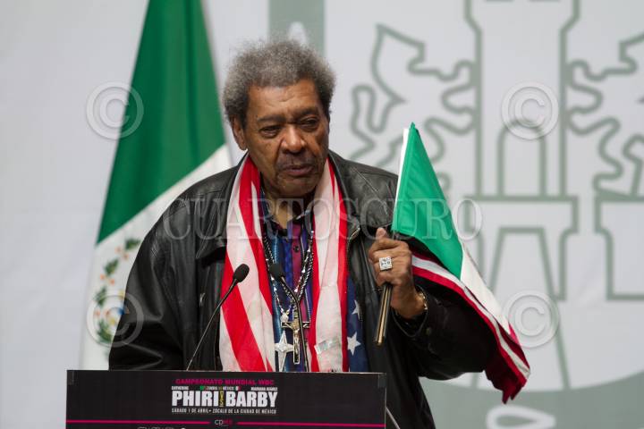 CIUDAD DE MÉXICO, 30MARZO2017.- El promotor Don King durante la presentación de los boxeadores que participarán en la magna de función de boxeo, que se realizará el próximo 1 de abril en la plancha del Zócalo. FOTO: MOISÉS PABLO /CUARTOSCURO.COM