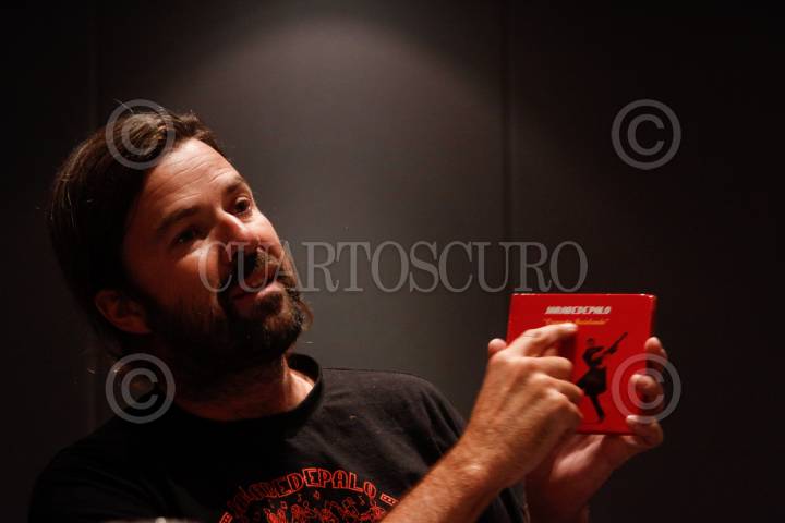 Pau Donés, líder del grupo Español Jarabe de Palo, en conferencia de prensa anunció su concierto de mañana en la explanada del Zócalo capitalino. FOTO: Victoria Valtierra/CUARTOSCURO.COM