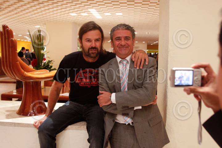 MEXICO, DF 06OCTUBRE2005.- Paul Dones, vocalista de Jarabe de Palo y el compositor ganador del oscar Jorge Drexler, a su llegada a la ceremonia de entrega de los premios Lunas, otorgado a lo mejor de los espectaculos en el país. FOTO: Miguel Dimayuga/CUARTOSCURO.COM