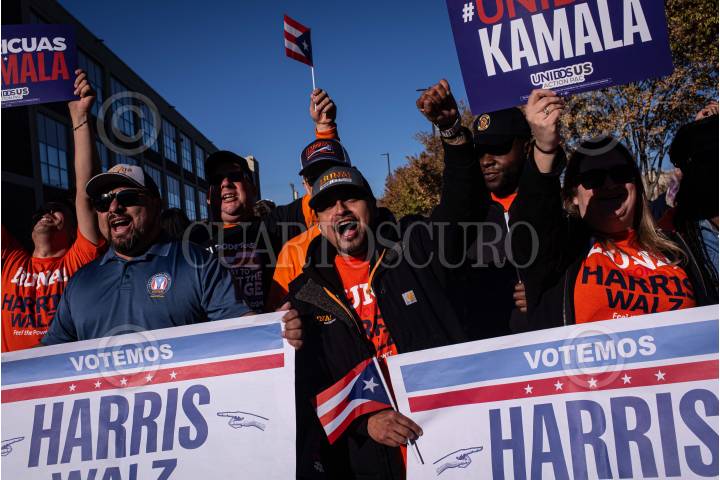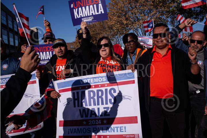 FILADELFIA, ESTADOS UNIDOS, 02NOVIEMBRE2024.- Miembros de la comunidad Puertorriqueña de Pensilvania, manifestando su descontento con el incidente del domingo pasado, cuando el comediante Tony Hinchcliffe, en un acto de apoyo al candidato republicano Donald Trump, se refirió al país caribeño como una "isla de basura flotante", demuestran apoyo a la candidata del partido demócrata, Kamala Harris, en las calles de Filadelfia. Sindicatos y organizaciones sociales participaron a su vez en actos de apoyo a la diáspora puertorriqueña. FOTO: PEDRO ANZA /CUARTOSCURO.COM