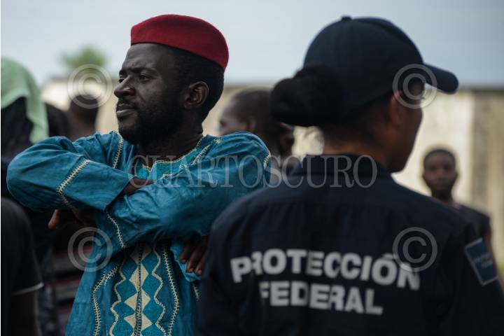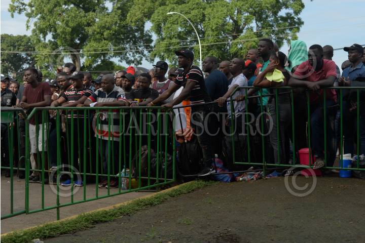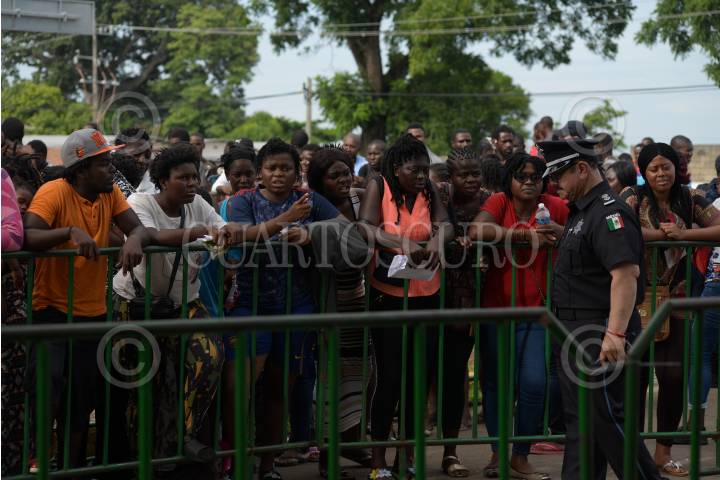 TAPACHULA, CHIAPAS, 07JUNIO2019.- De acuerdo a las cifras publicadas en la pagina del Instituto Nacional Migratorio, en el mes de abril entraron 20 mil 564 personas en situación irregular migratoria, de los cuales, según el mismo Instituto, se han deportado a la mayoría. La Estación Migratoria Siglo XXI tiene capacidad para albergar a 900 personas y en los últimos meses se ha rebasado la capacidad del lugar en cifras elevadas de acuerdo a testimonias de los mismos agentes, pero sin cifras o información oficial al respecto. Cientos de migrantes extracontinentales llegan directamente a la Estación para iniciar sus tramites, algunos ya llevan más de 40 días esperando información o respuestas a su situación migratoria en el país. FOTO: ISABEL MATEOS /CUARTOSCURO.COM