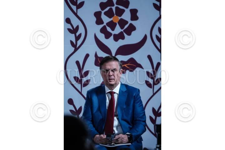 CIUDAD DE MÉXICO, 03ABRIL2025.- Marcelo Ebrard, secretario de Economía, durante la conferencia "Mañanera del Pueblo" en la que explicó los detalles sobre el "trato preferenial" debido al T-MEC al que quedó sujeto el comercio bilateral con la administración de Donald Trump, tras las amenazas de la imposición de aranceles de 25% FOTO: GALO CAÑAS/CUARTOSCURO.COM