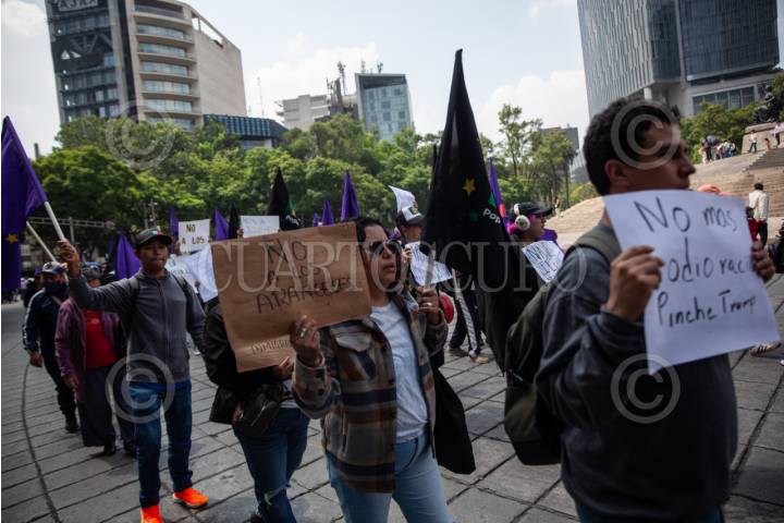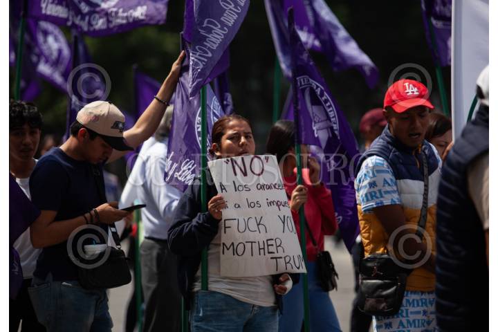CIUDAD DE MÉXICO, 23 DE JULIO DE 2025.– Distintas organizaciones sociales se manifestaron de manera pacífica frente al Ángel de la Independencia y marcharon hacia la embajada de Estados Unidos, en protesta por las medidas arancelarias impuestas por el presidente estadounidense Donald Trump a México y otros países. FOTO: ANDREA MURCIA / CUARTOSCURO.COM