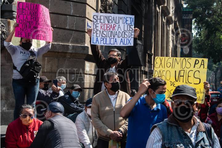 Jubilados y pensionados de la Policía Auxiliar se manifestaron al exterior del Congreso de la Ciudad de México para exigir al gobierno capitalino sus pagos de vale y pagos extraordinarios de fin de año.