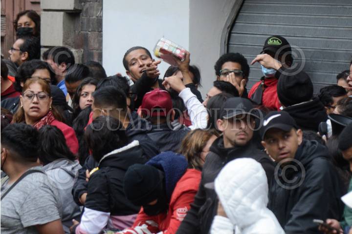 Asistentes reciben "box lunch" mientras esperan la llegada de Claudia Sheinbaum, jefa de Gobierno, al Congreso de la Ciudad de México, en donde presentó su cuarto informe de gobierno.