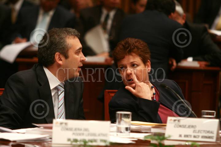 MÉXICO D.F., 27JUNIO2008.- Sesión estraordinaria del Instituto Federal Electoral, en la imagen los consejeros Maria Teresa de Jesus y Antonio Baños durante la sesion. FOTO: SÁSHENKA GUTIÉRREZ/CUARTOSCURO.COM